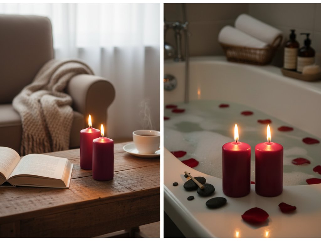 • Burgundy candles will highlight metal elements in the arrangement (gold, copper), and thanks to their rich color, they contrast beautifully with natural tones.