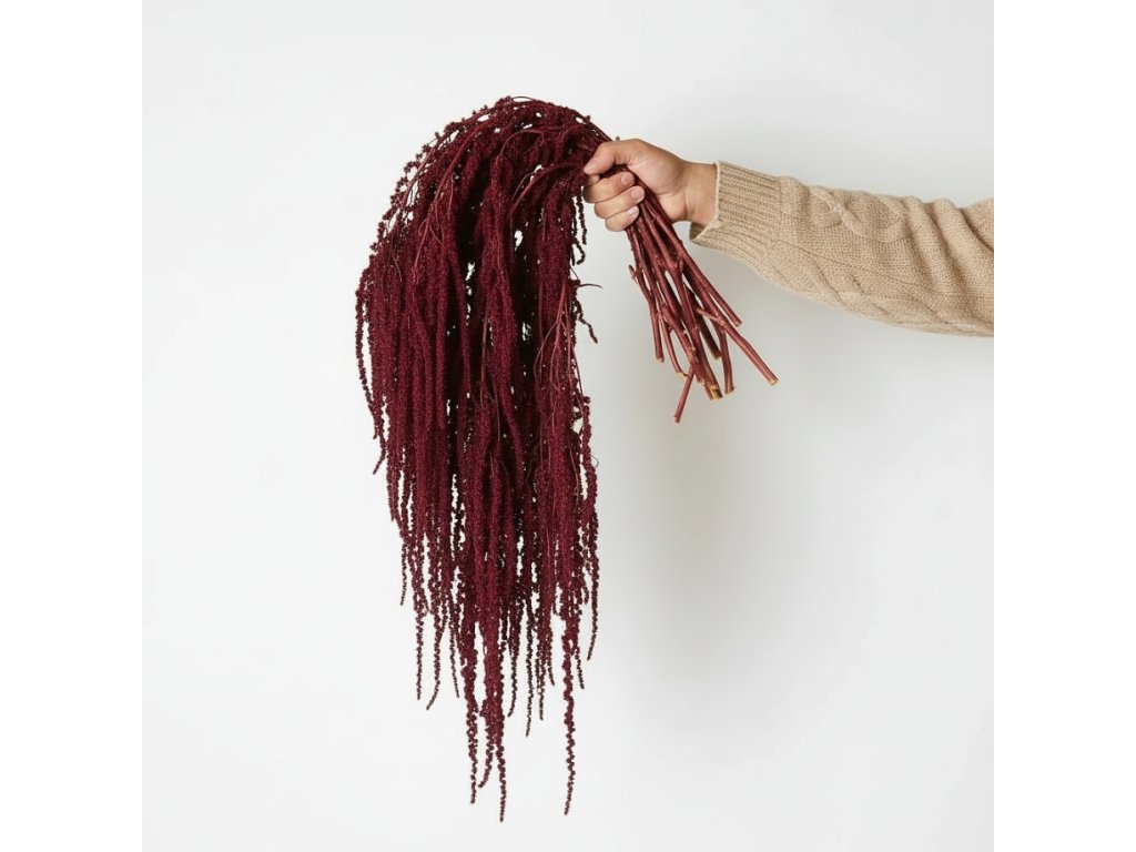 Amaranthus Caudatus originates from the regions of South America and Asia. After harvesting, it undergoes a stabilization process where natural juices are replaced with a gentle stabilizing solution. The result is flowers that retain their appearance, color, and flexibility for a long time. Stabilized amaranthus is practically maintenance-free – it does not need to be watered or protected from light.