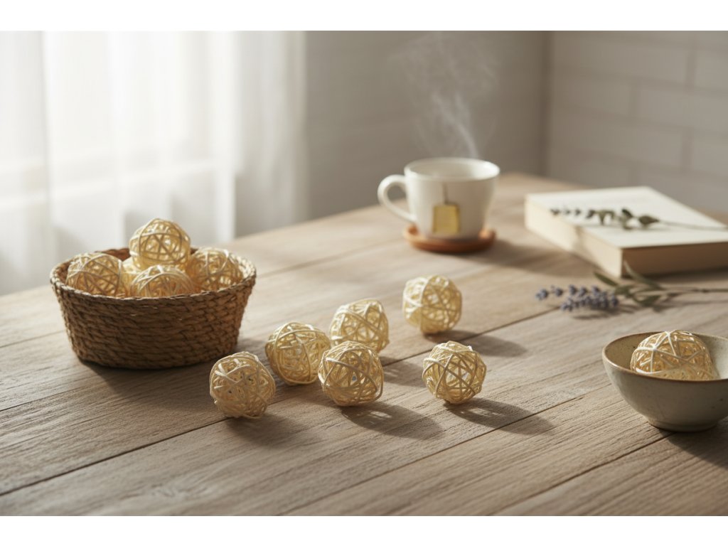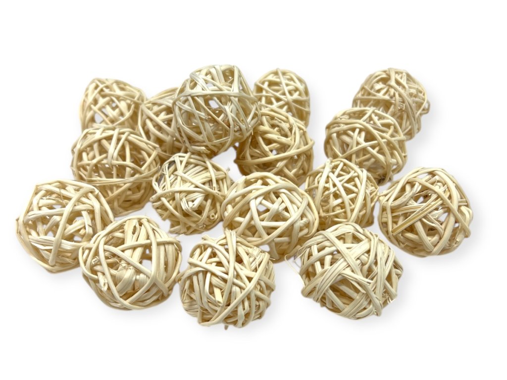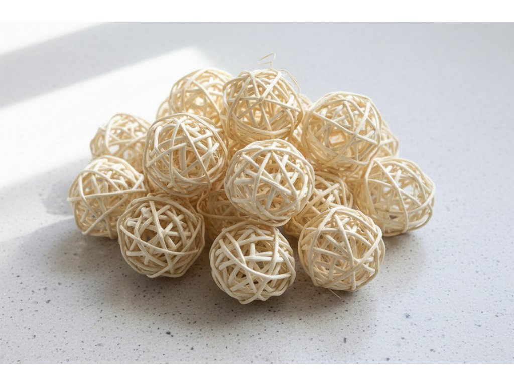 Bleached cream rattan balls 3 cm are especially useful for wedding decorations – for decorating festive tables, arrangements in vases and bowls, for wedding boxes, wreaths, favors, or for embellishing gifts for guests. The cream color combines beautifully with buttery, nude, and beige tones and helps to soften and "brighten" the composition.