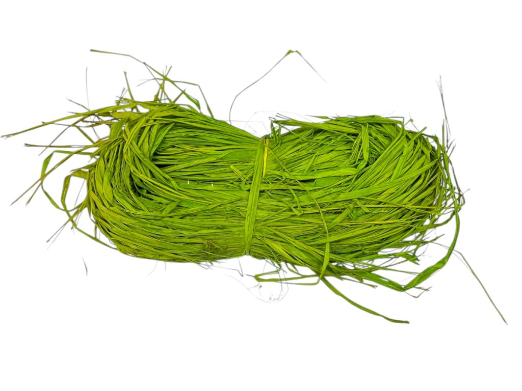 Raffia is traditionally made from the leaves of the raffia palm, native to the tropical regions of Africa and Madagascar. Thanks to its strength, natural appearance, and ecological origin, it has been a popular material in floristry for centuries, adding an authentic and natural character to arrangements. The light green colour adds a subtle and fresh touch to compositions.