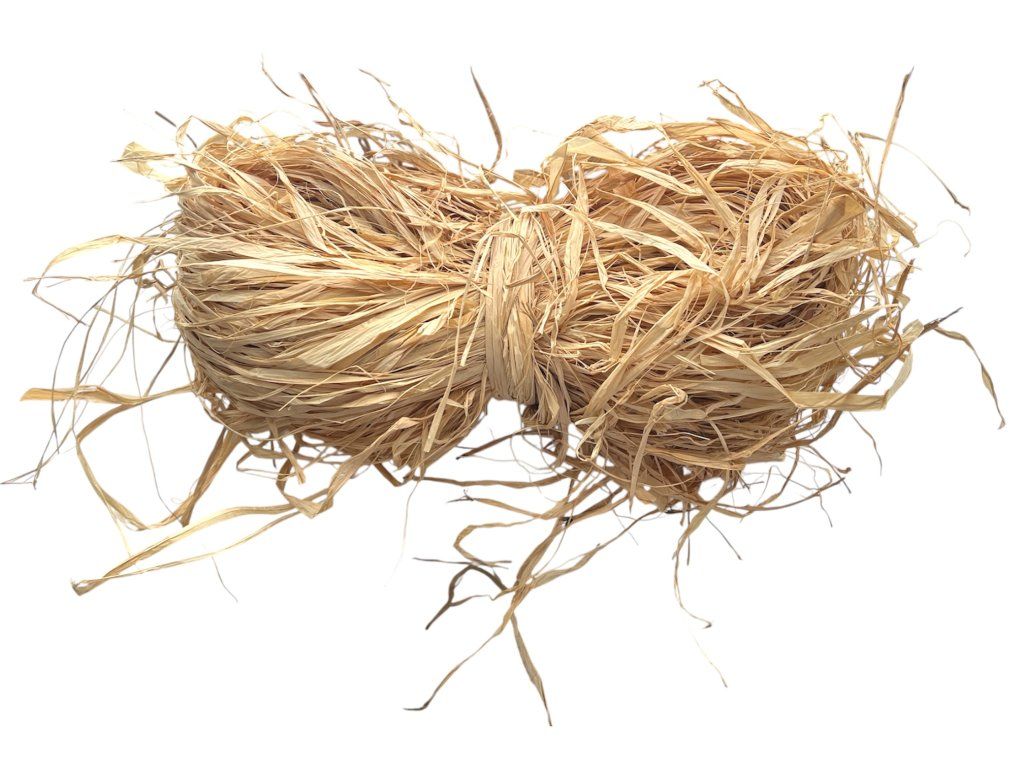 Raffia is traditionally made from the leaves of the raffia palm, which originates from the tropical regions of Africa and Madagascar. For centuries, it has been used in crafts and, thanks to its durability and natural appearance, it remains a popular ecological material today.
