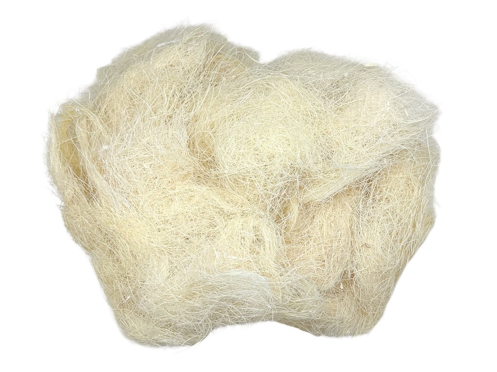 White sisal fiber is a popular floristry and decorative material ideal for weddings, Christmas, or elegant interior accessories. You can use it for making wedding wreaths, table arrangements, gift packaging, and winter decorations. It combines excellently with natural materials such as pine cones, twigs, dried flowers, or with silver and gold elements for a more luxurious effect.