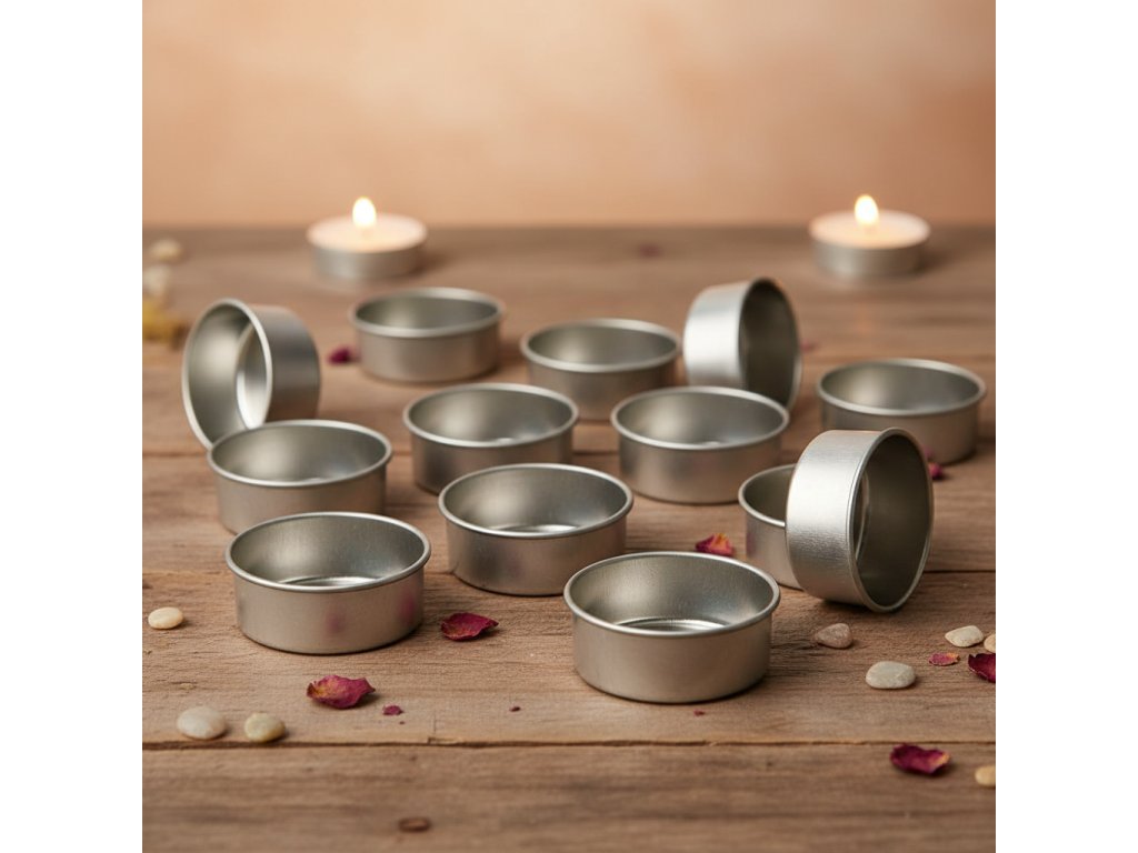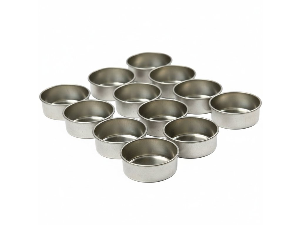 Metal cups can be used as a stable "holder" for tea lights in advent arrangements, festive bowls, table decorations, or in modern compositions with dried materials. They help keep the candle in place while protecting the surface from wax, ensuring a clean and professional look.