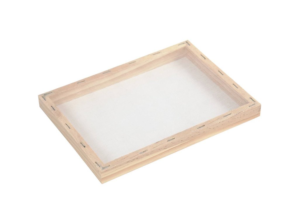 A simple wooden frame for making A5 handmade paper is an ideal tool for everyone who wants to discover the magic of handmade paper. It is used very simply – just dip the frame into a container with water and paper pulp. A layer of pulp will adhere to its surface, the water will drain, and you will tip the wet paper onto an absorbent surface where you will let it dry. This type of paper has rustic and irregular edges, giving it an original look.