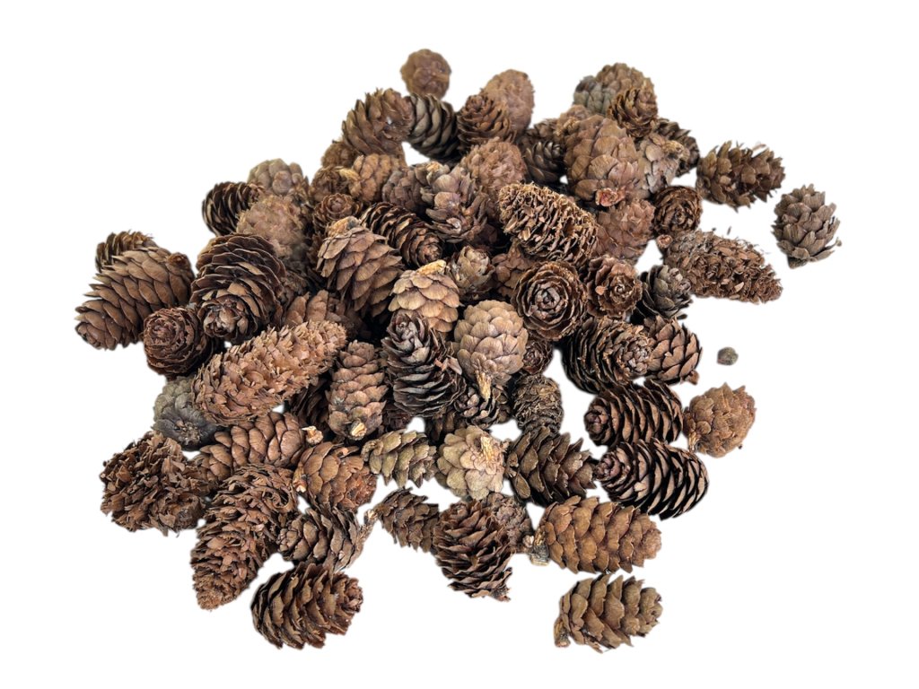 Larch cones (Larix decidua) are popular for their firm conical shape and natural light brown color. They are suitable for winter and autumn decorations, wreaths, table arrangements, or moss pictures. In combination with dried flowers, pine or plumosum cones, they create a harmonious and rustic effect.
