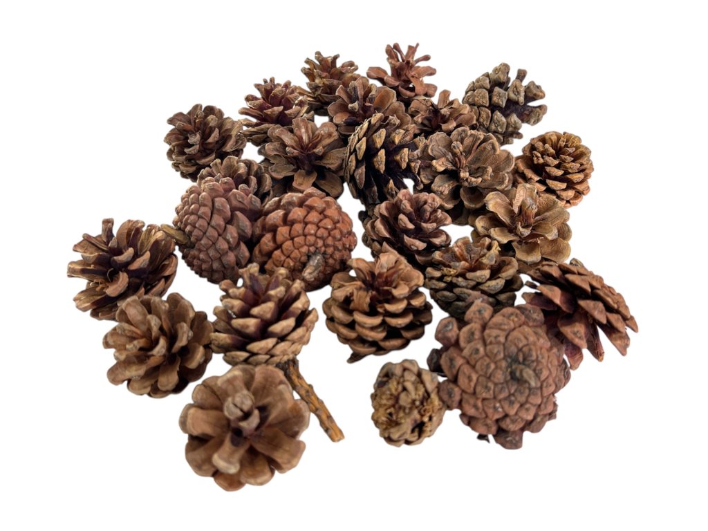 Pine cones (Pinus mugo) are among the most popular natural materials for creating seasonal decorations. Their small, regular shape and warm brown color make them an ideal addition to winter wreaths, Christmas arrangements, and rustic table decorations. Thanks to their size, they combine perfectly with dried flowers, moss, eucalyptus, or jute, creating a pleasant, harmonious whole.