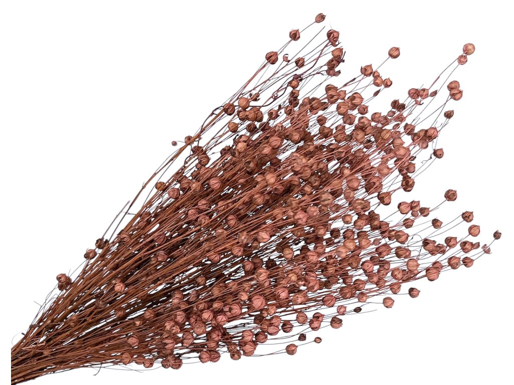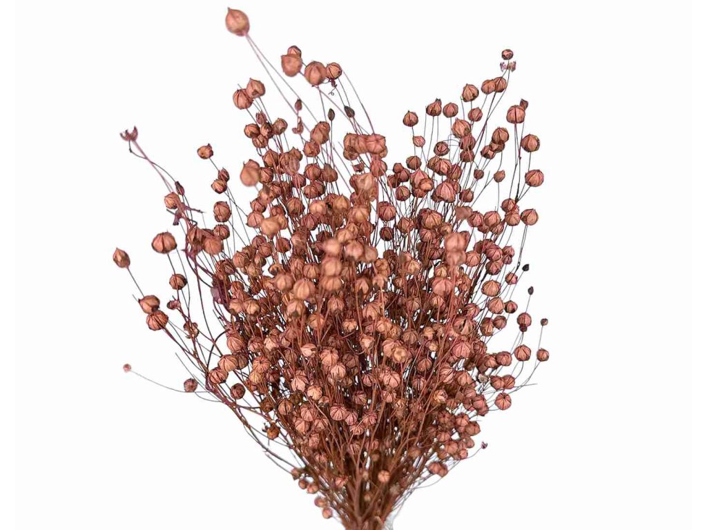 Flax (Linum ) is grown on local and European farms; after harvesting, its stems and round flowers are gently dried and then dyed to the desired shade. The color is vibrant and stable, giving a fresh and modern look in arrangements.