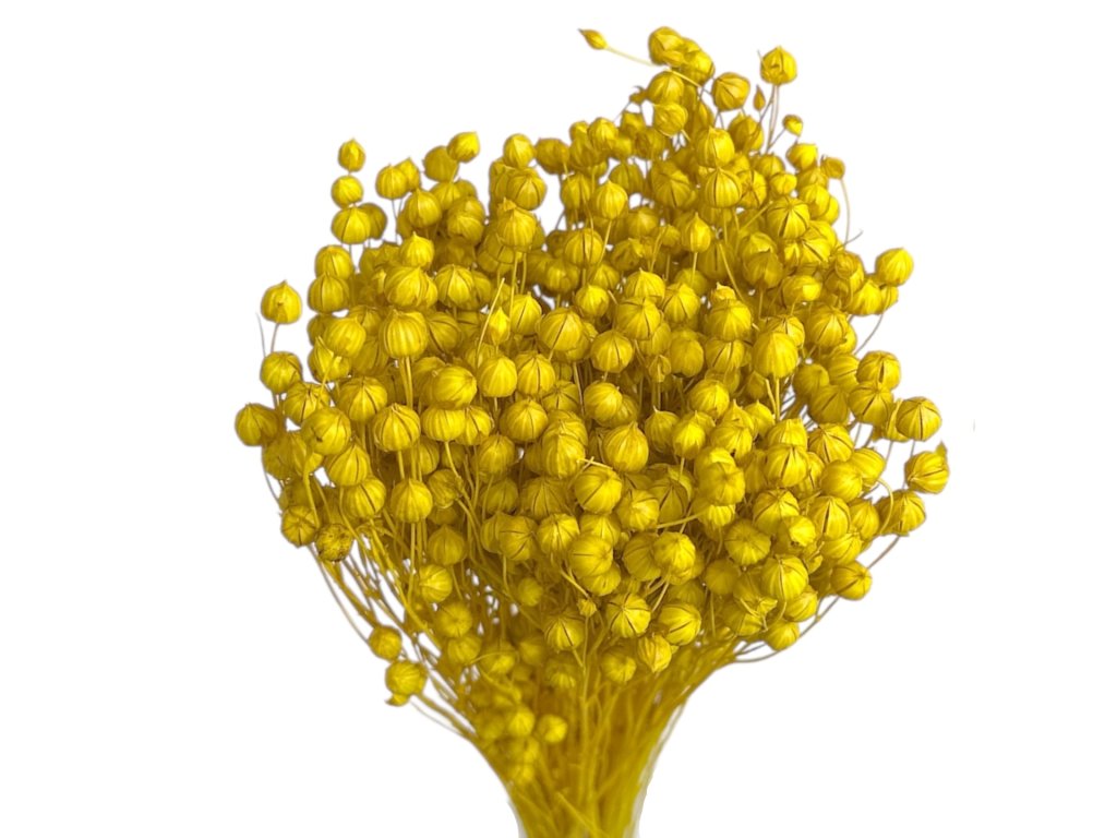 Flax (Linum) is grown on local and European farms. After harvesting, its stems and round flowers are gently dried and then dyed an orange shade. The color is vibrant and stable, giving a fresh and modern look in arrangements.