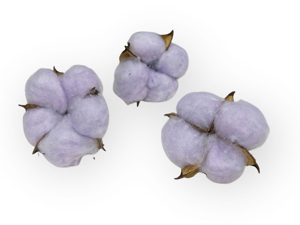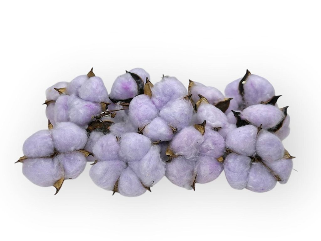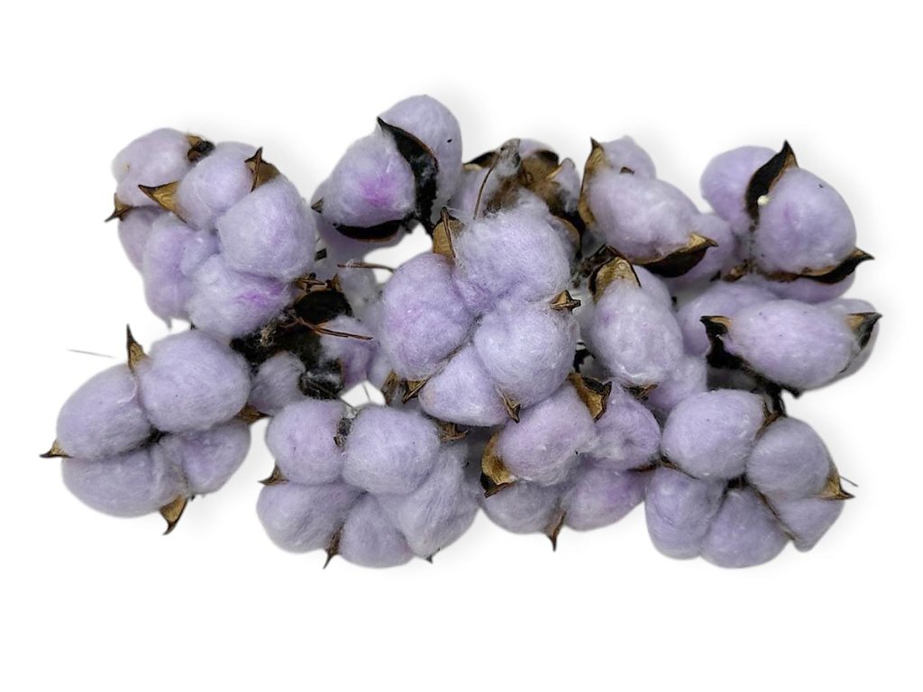 Cotton originates from the tropical regions of India and Africa, but for floristic purposes, it is also grown and dried in the Mediterranean. Each flower is hand-picked at the moment the boll naturally opens and reveals its fluffy fiber. After drying, it is fixed to preserve its shape and softness. Dyed by dipping and then drying in safe colors.