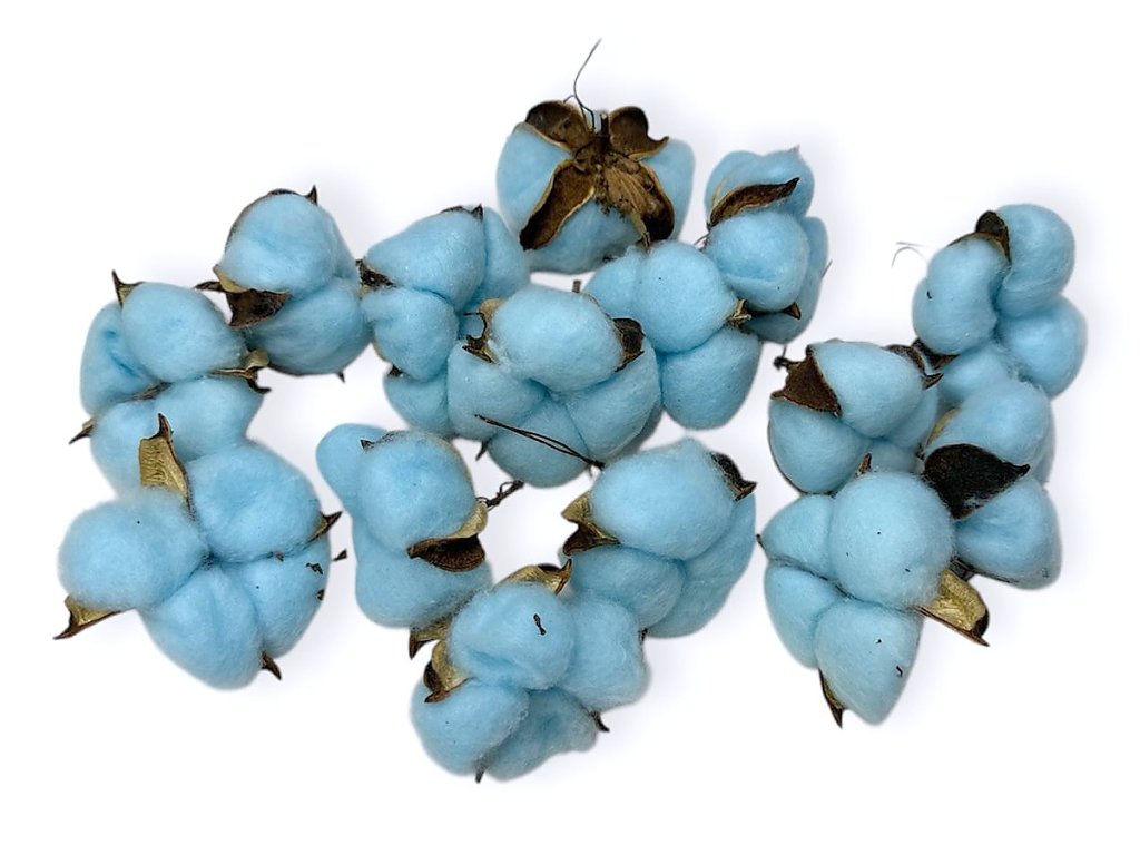 Cotton originates from the warm regions of India and Africa, but for floristry purposes, it is also grown and dried in the Mediterranean. Each flower is hand-picked at the moment the boll naturally opens and reveals its fluffy fiber. After drying, it is fixed to preserve its shape and softness. Dyed by dipping and then drying in safe colors.