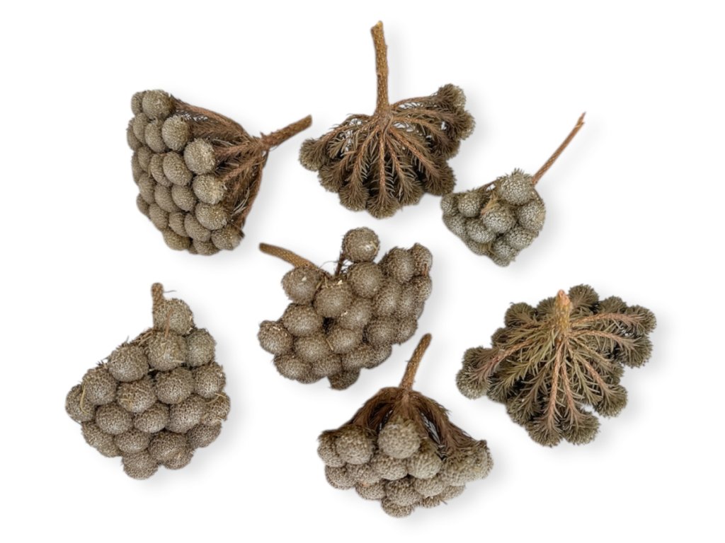 Brunia originates from South Africa, where it grows in the dry areas of the Cape Province. It is harvested by hand in full bloom, when its heads have the best structure. It is then dried at a low temperature to retain its characteristic shape, strength and matte natural tone. Each headboard is an original – some are lighter, others darker, which gives the resulting decoration a natural and authentic look.