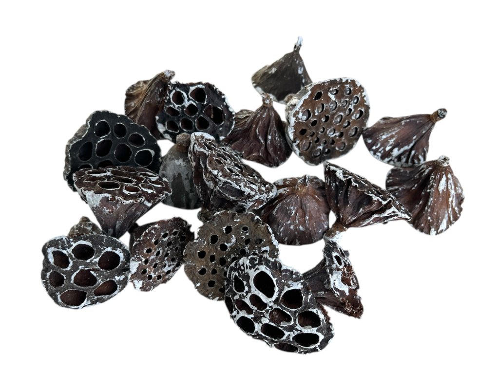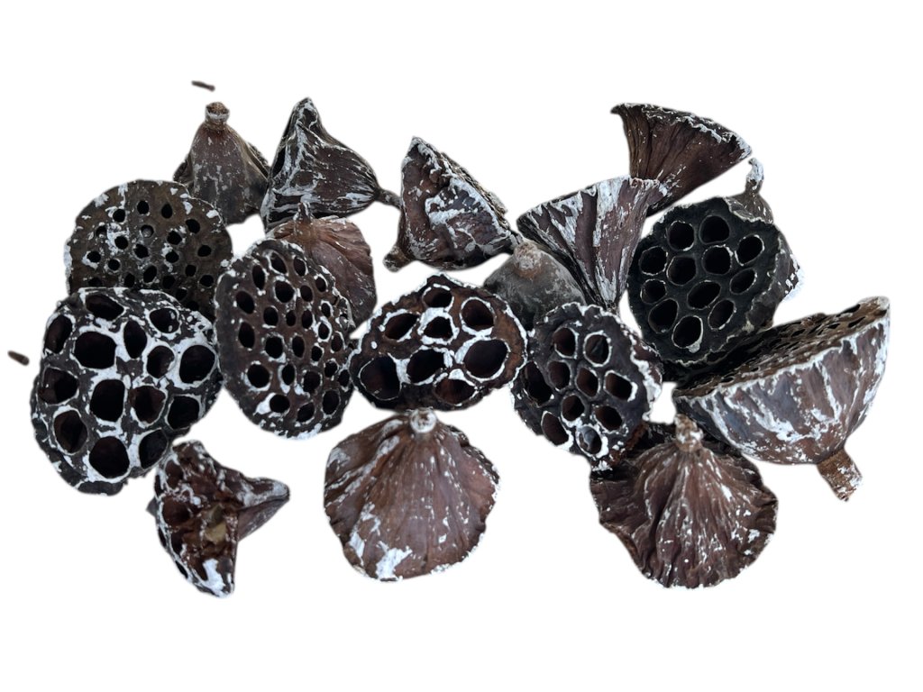 The lotus is a symbol of harmony, purity, and spiritual peace. While it grows in muddy water in nature, its flower always remains perfectly clean – which is why it is often used as a symbol of rebirth. The delicate whitening on the edges of these dried flowers evokes the frosty touch of winter and adds unique visual contrast to arrangements.