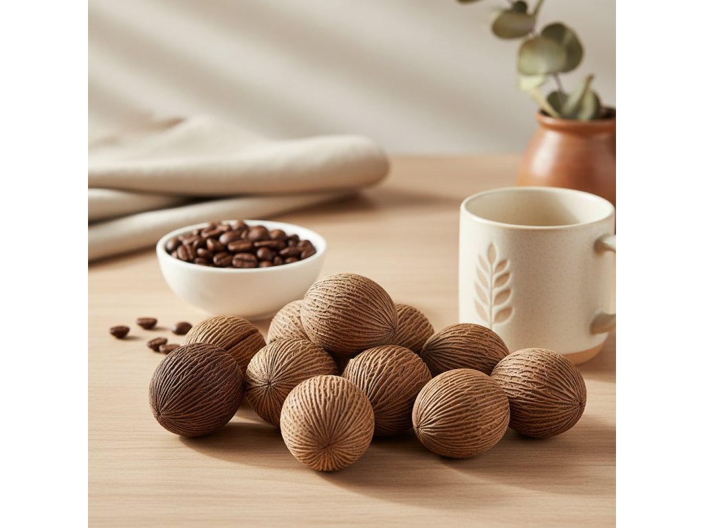 Mintola fruits come from the Cerbera odollam tree (pong-pong tree). After drying, their hard fibrous shell transforms into a lightweight decorative element with a delicate texture, ideal for modern natural arrangements and boho style. Each piece is unique in its shape and shade.