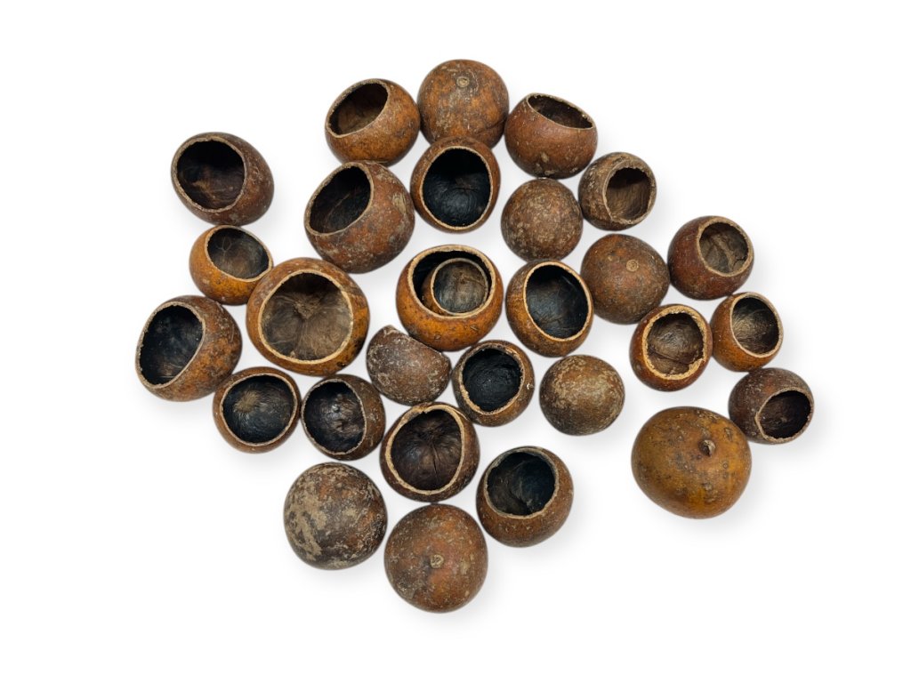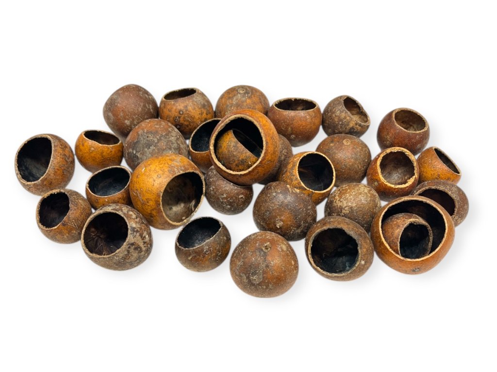 Bell Cup fruits originate from tropical regions, where they grow on trees forming distinctive, cup-shaped capsules. After natural drying, they retain their typical "bell-like" shape, which makes them a unique decorative element. Each piece is original – it differs in shape, structure, and fine surface texture, which adds natural authenticity to every arrangement.