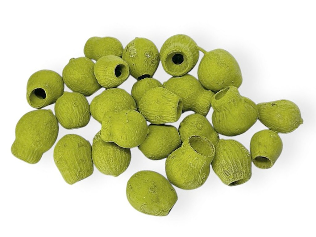The fruits originate from the eucalyptus Eucalyptus leucoxylon, known as Bell Gum. After harvesting, they are dried and then surface-treated by immersion in an aqueous base with pigments. This coloring method is similar to water-based paints (e.g., interior wall paints) – it creates a matte, delicate surface that preserves the natural structure of the fruits. Each piece is unique and may vary slightly in shape and shade.