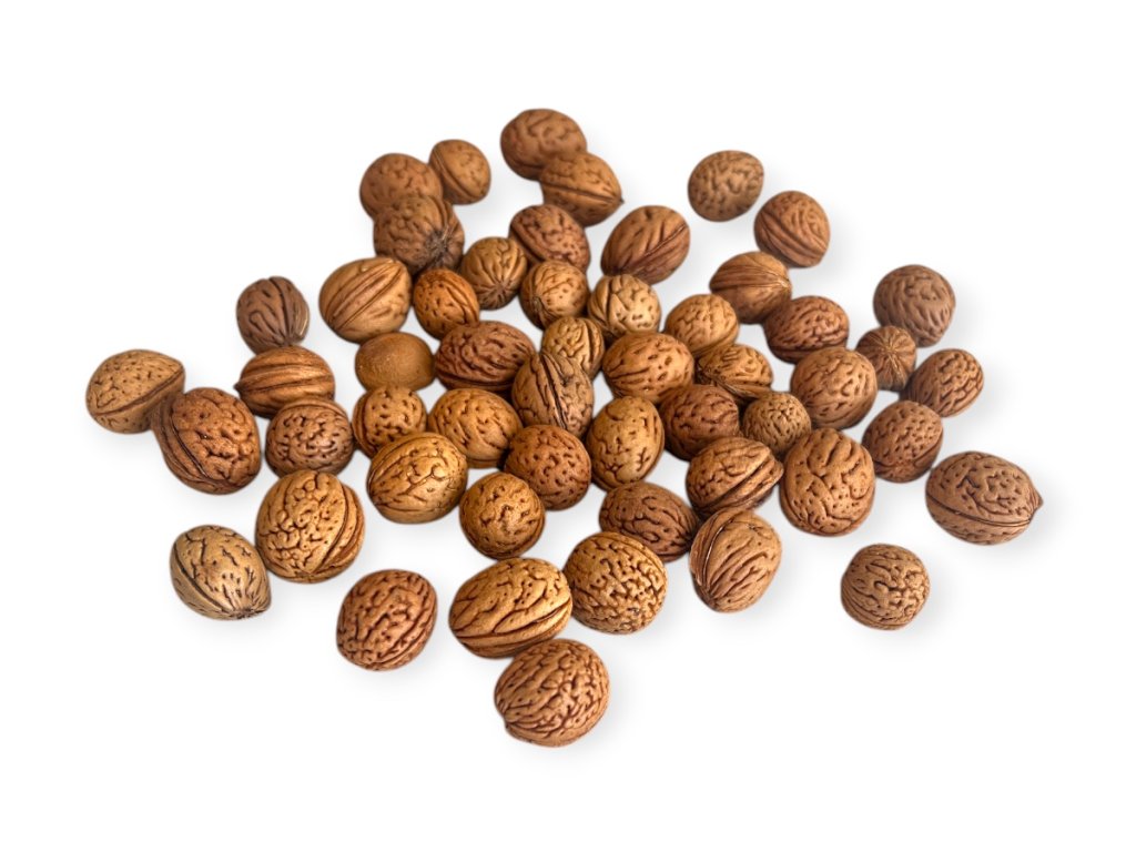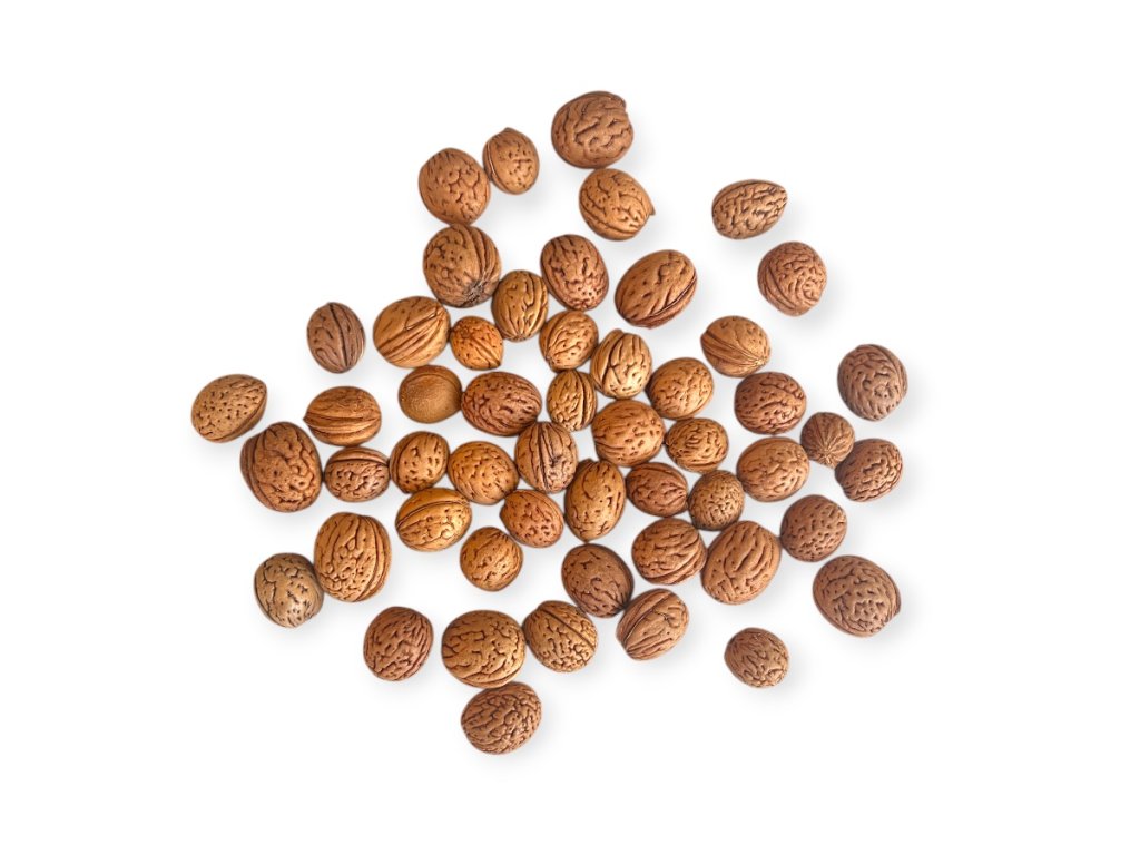 Store the pits in a dry place and away from moisture – like all natural materials, they can change shade over time or absorb moisture from the air. If you use them in open decorations, we recommend gently dusting them occasionally with a brush or dry cloth. Do not expose them to direct sunlight to preserve their natural colour tone.