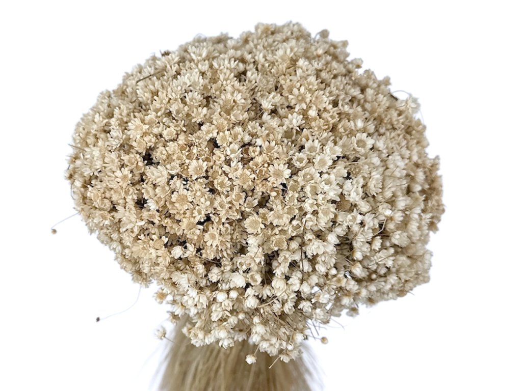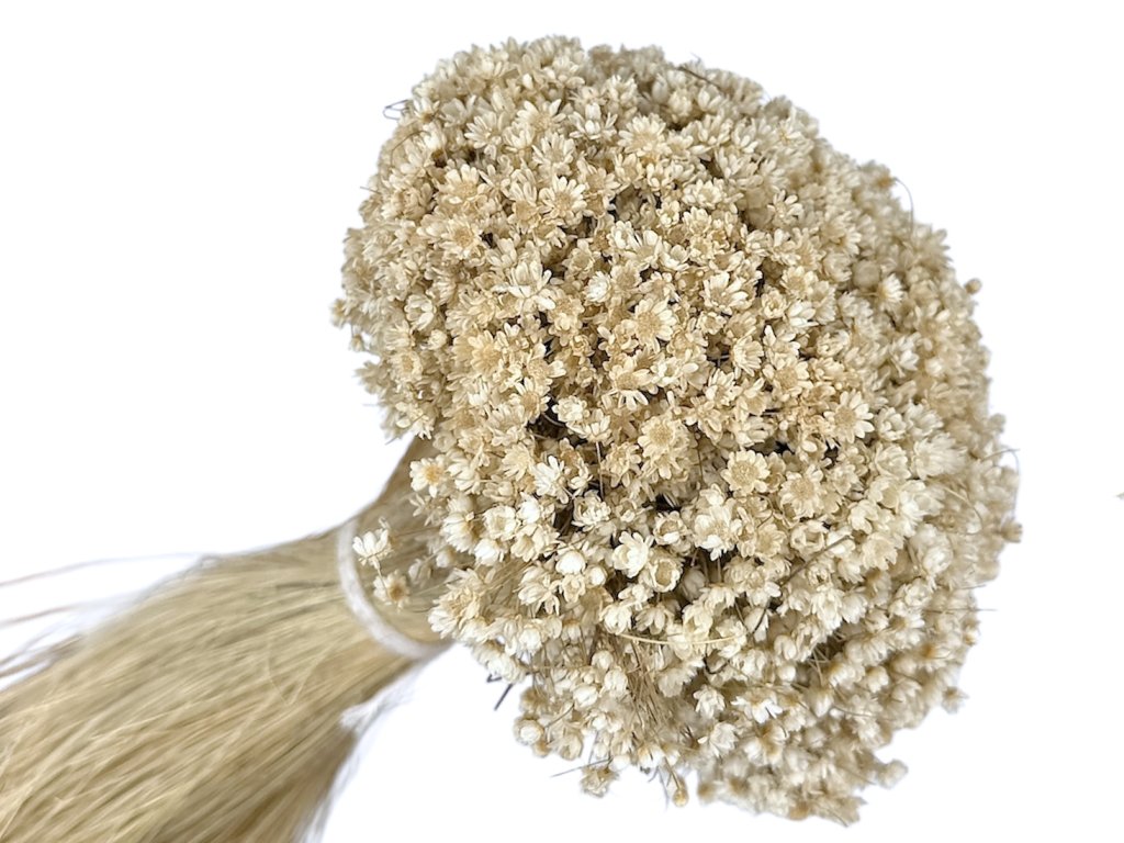 Glixia originates from sunny farms in South America. Our Glixia comes from Central European farms with consideration for the ecological footprint. After harvesting, the flowers are hand-sorted, dried in bunches, and packed with an emphasis on preserving their shape and natural color. Natural white Glixia Marcela is not chemically bleached – it retains its authentic light color.
