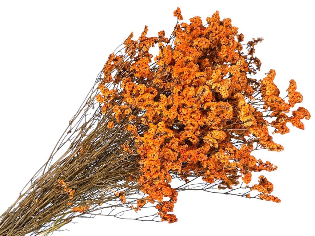 Limonium sinensis originates from Asia and the Mediterranean, where it is also known as 'sea lavender'. After harvesting, the plant is dried naturally to preserve its typical papery structure. This variant is tinted a deep orange color, which enhances its decorative character.