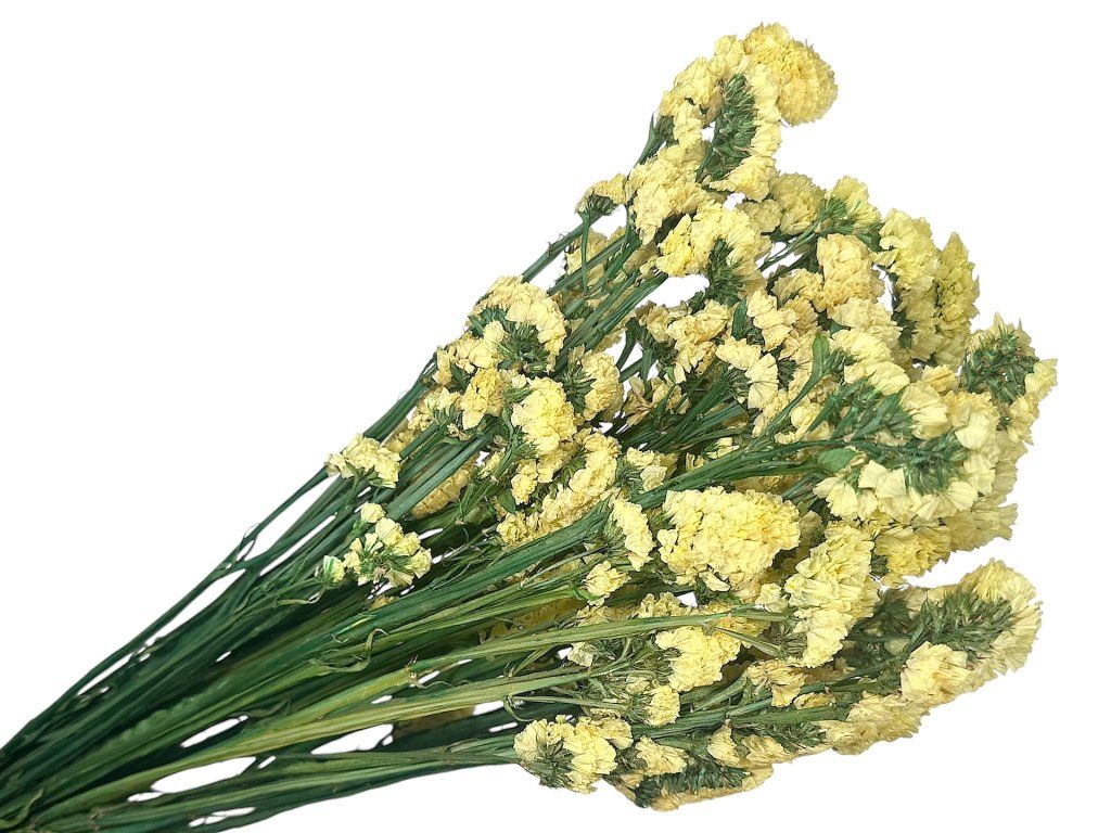 Limonium sinuata, also known as "statice" or "sea lavender", is originally cultivated in the Mediterranean and Asia. After harvesting in full bloom, it undergoes a stabilization process where natural sap is replaced with glycerin and dye. Thanks to this, the flowers retain their natural appearance, delicate hue, and flexibility for months or even years.