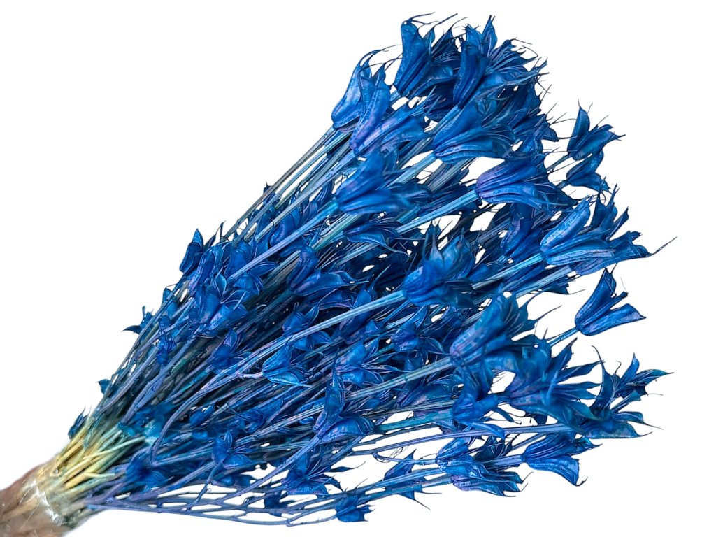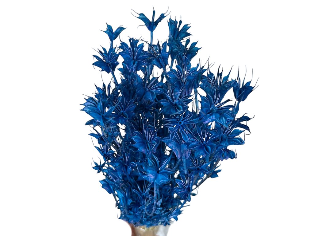 Nigella orientalis, also known as Eastern Black Cumin, is among the traditional European ornamental plants. Its star-shaped seed pods are harvested at full maturity, carefully dried, and then dyed a deep cobalt blue. Thanks to its distinct structure and natural strength, it is popular with florists and interior designers alike.