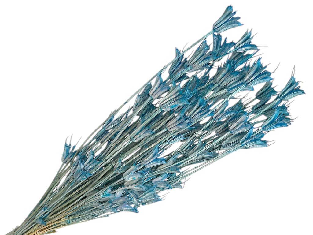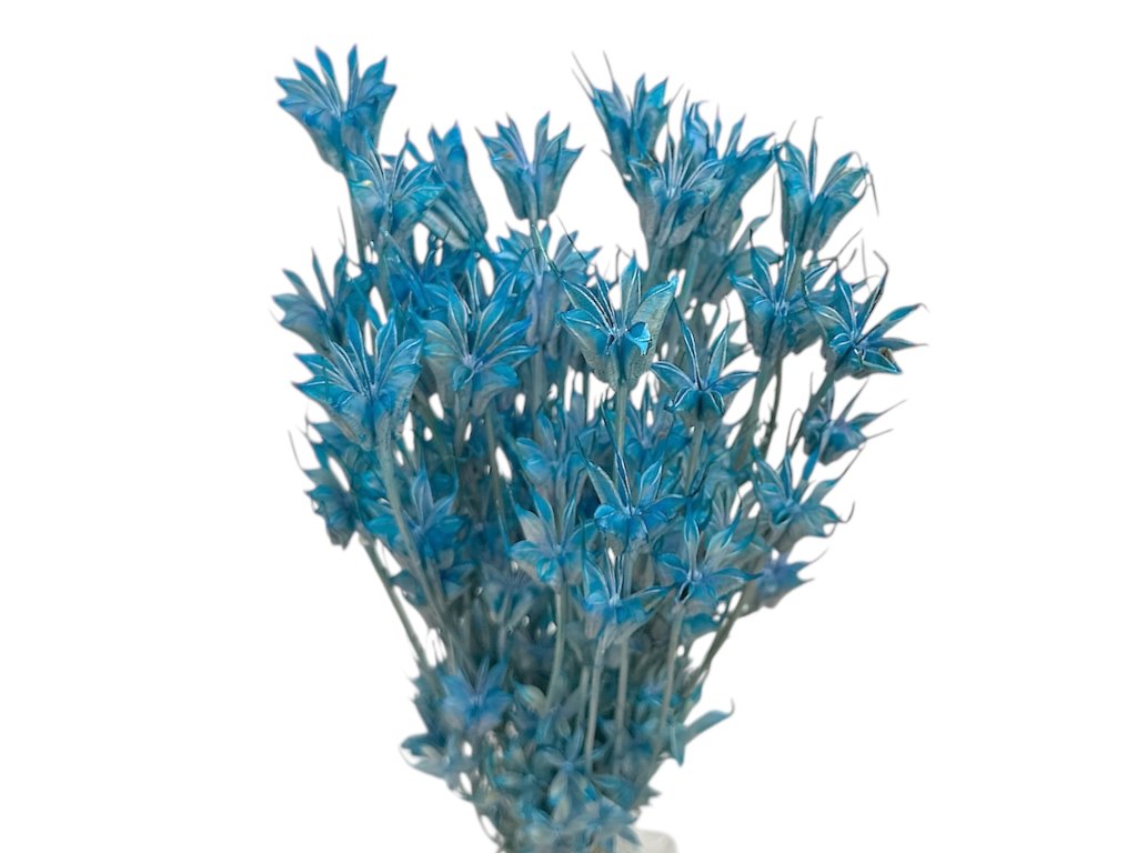 Nigella orientalis, also known as Eastern Black Cumin, is among the traditional European ornamental plants. Its star-shaped seed pods are harvested at full maturity, carefully dried, and then dyed a deep cobalt blue. Thanks to its distinct structure and natural strength, it is popular with florists and interior designers alike.