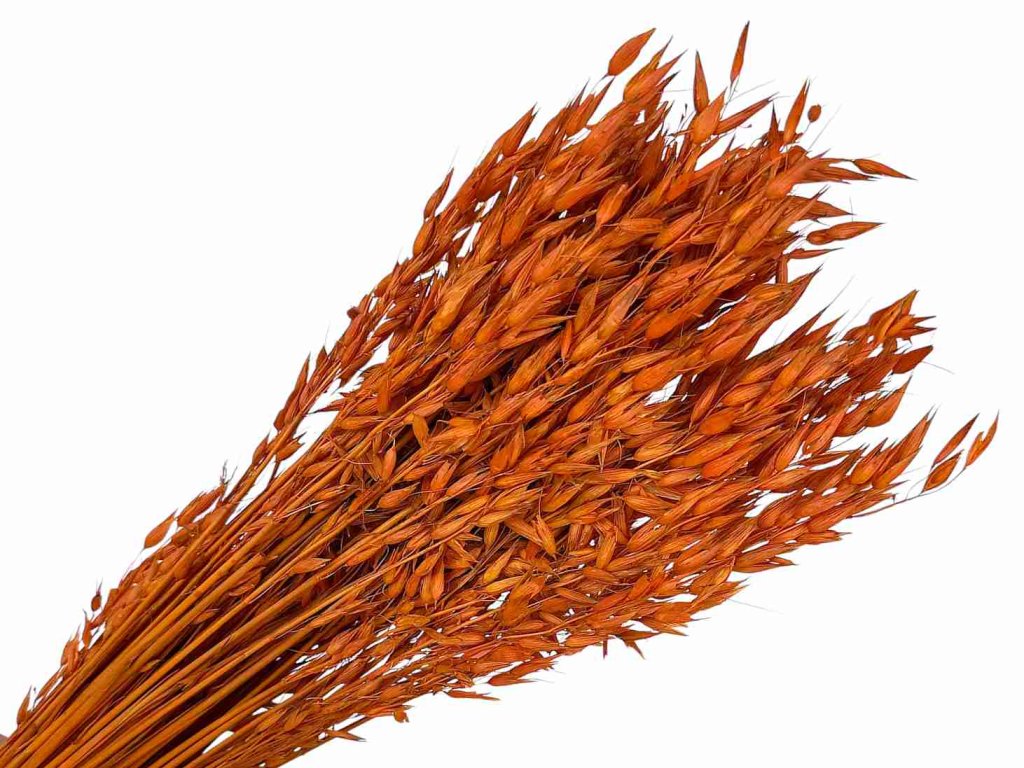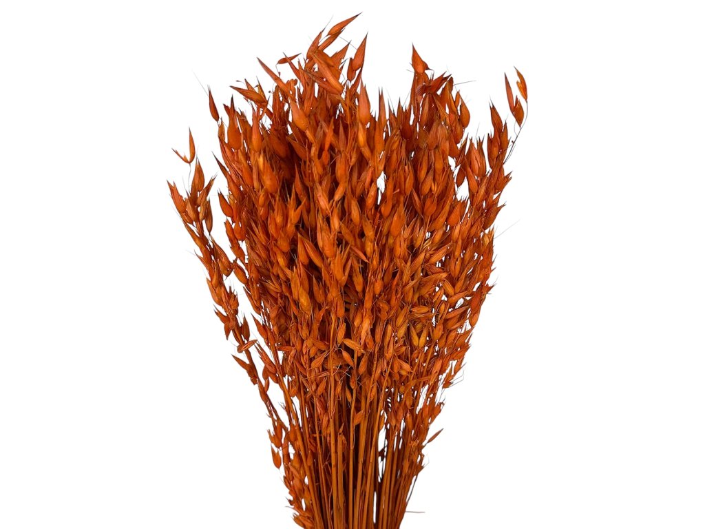 Oats (Avena) were gently dried and hand-dyed to a soft pastel orange after harvesting in Europe. This natural material retains a delicate texture and the beautiful movement of its stalks, adding lightness and elegance to your arrangements. In the past, oats were used not only for nutrition but also as a decorative element in folk art, symbolizing abundance and harvest.
