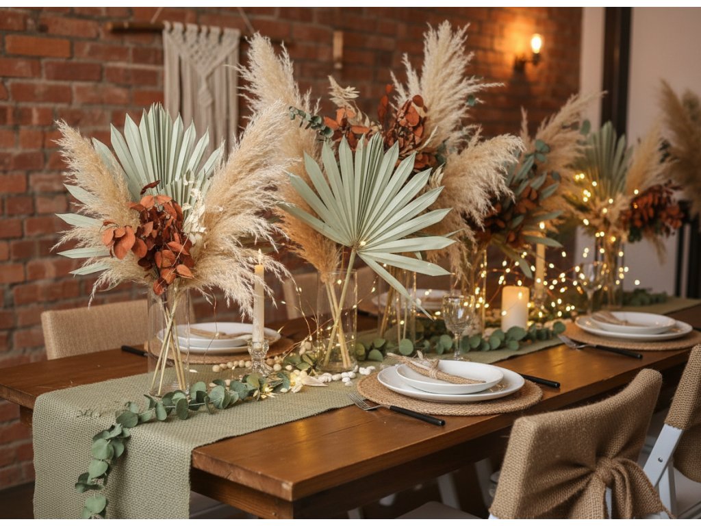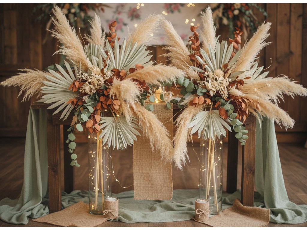 • Combined with pampas grass, stabilized eucalyptus, and creamy lagurus, a modern boho mix is created, which is very popular for weddings and interiors.
