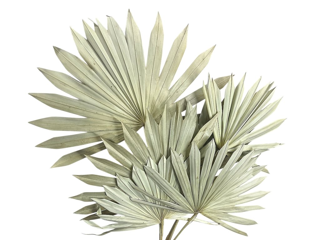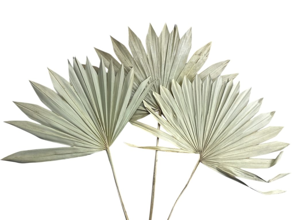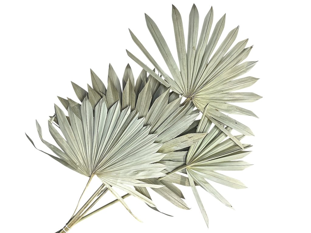 Palm leaves originate from plants of the Arecaceae family. After harvesting, they are naturally dried to preserve their strength, natural veining, and light natural shade. They are manually cut and shaped into a wide fan profile, preserving their authentic pattern. The natural variant is not dyed or chemically treated – it is the original appearance of the leaf after drying.