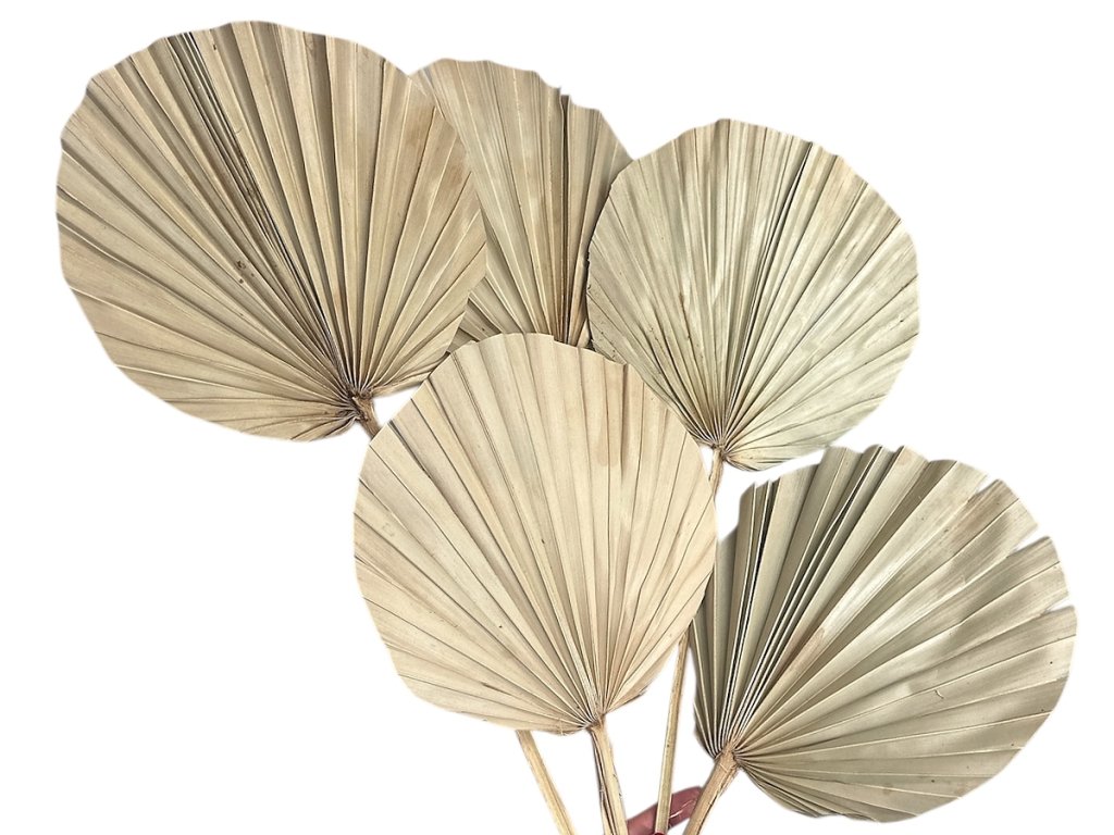 Palm leaves originate from plants of the Arecaceae family. After harvesting, they are naturally dried to preserve their strength, veining, and typical palm structure. The natural variant is not chemically dyed or treated. Subsequently, they are hand-shaped into a round profile by precise cutting, ensuring the most harmonious shape and an even edge are maintained.