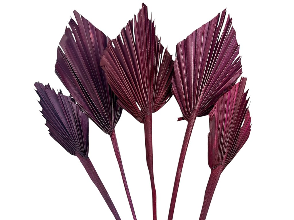 Palm leaves come from the Arecaceae species. After harvesting, they are naturally dried to preserve their firmness and typical veined structure. Subsequently, they are hand-cut and shaped into a special spearhead shape, which is popular among florists for easy placement in arrangements. The color is applied gently so as not to damage the leaf fibers and to ensure a lasting saturation. The result is a decorative element that lasts for years.