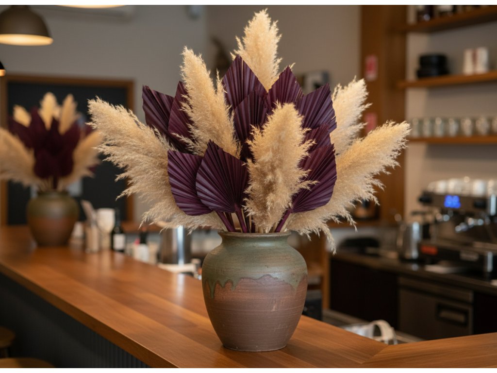 • For boho decor, they are perfect in combination with natural tones: natural palm leaves, cream phalaris, brown setaria, and beige pampas.