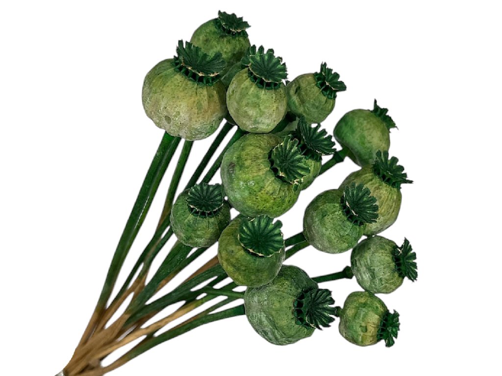 Green color symbolizes peace, balance, and connection with nature. In a dark tone, it adds a sophisticated and earthy touch to arrangements. Dark green poppy heads appear elegant, natural, and timeless – they are ideal for sustainably and ecologically oriented compositions.
