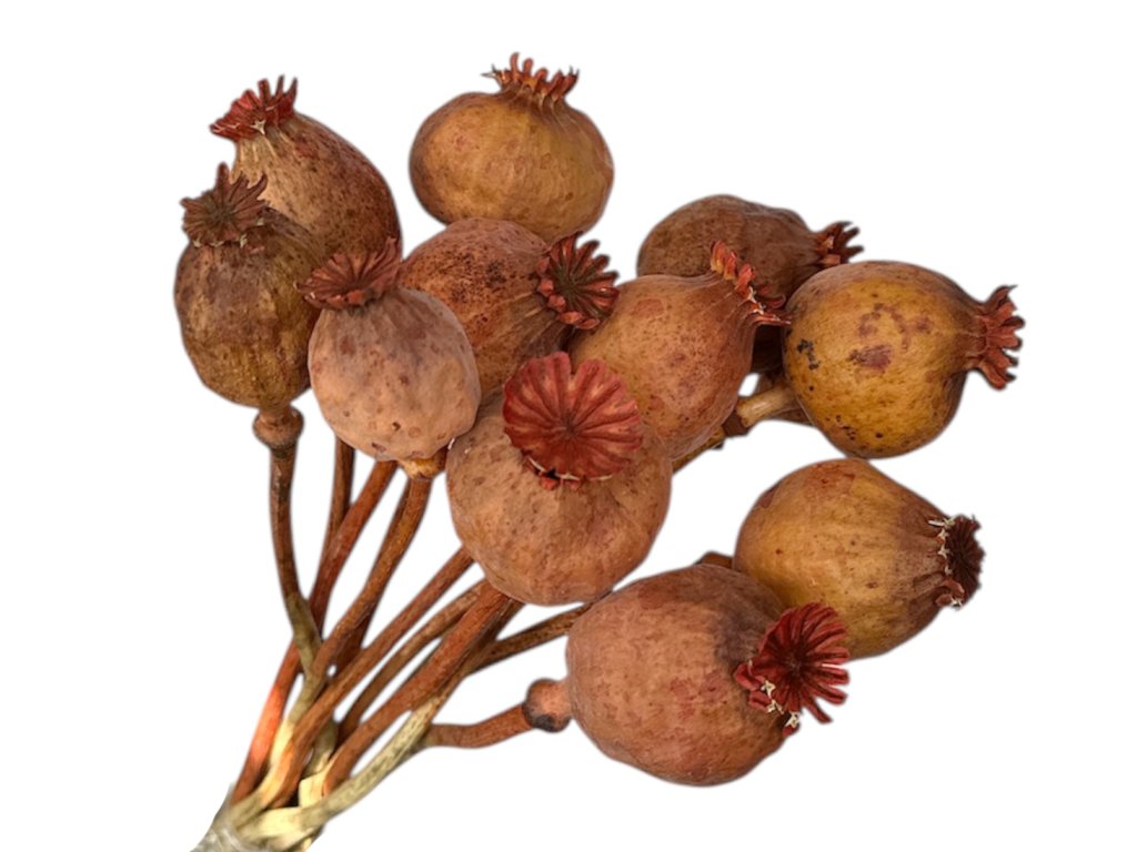Dried poppy heads for arranging approx. 30g bunch - burgundy red Natural dried poppy heads in a striking burgundy shade. Larger heads and pigment spots give them an authentic...