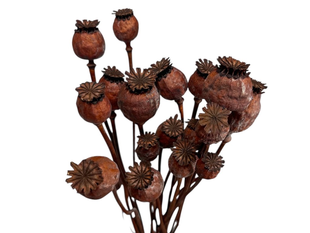 Poppy heads come from the opium poppy, which is cultivated using traditional methods on controlled Central European fields. After harvesting, they are naturally dried and coloured, preserving their shape. Dried poppy heads are then sorted and packaged with the stem attached for easy handling during arrangement.