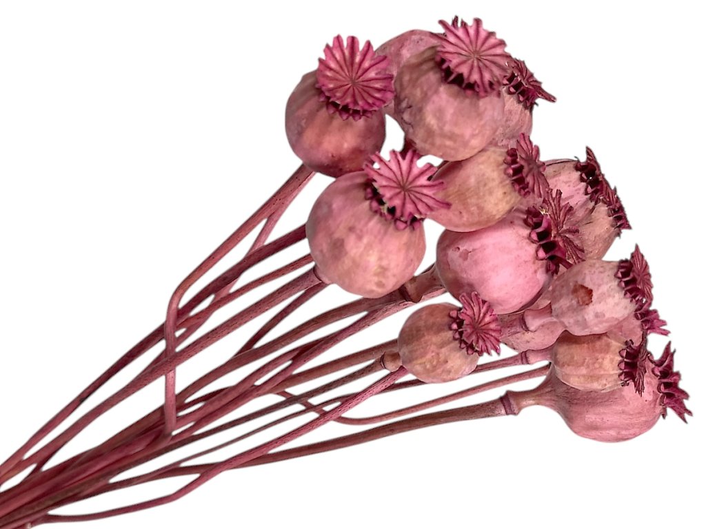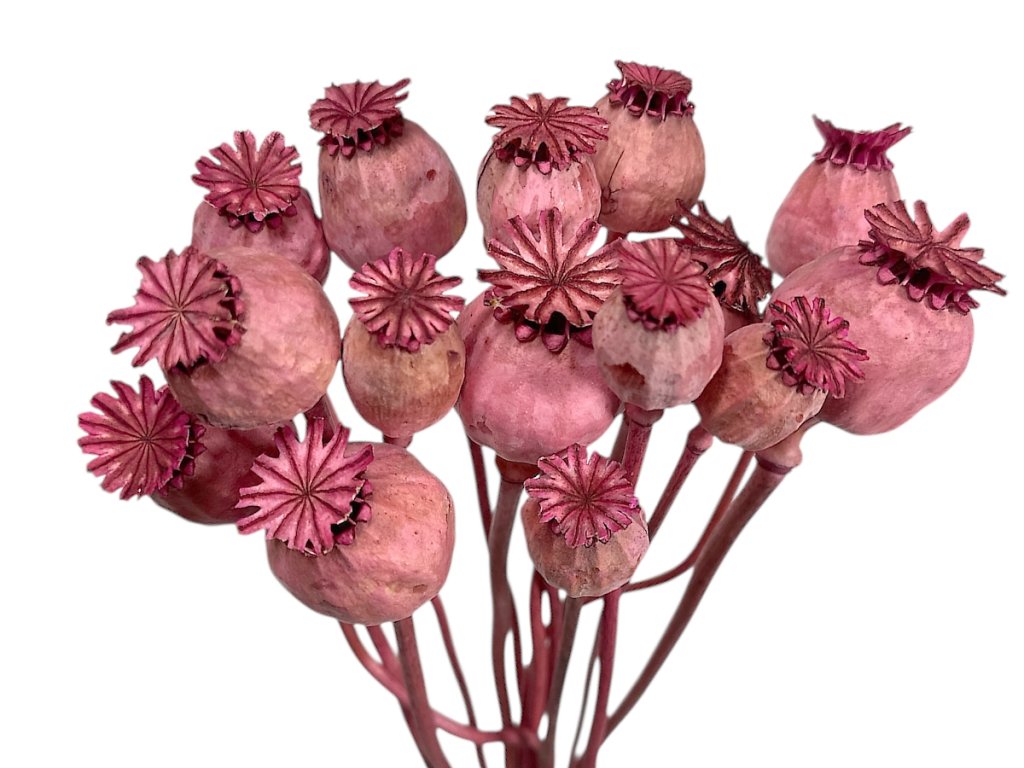 Poppy heads come from the opium poppy, which is cultivated using traditional methods on controlled Central European fields. After harvesting, they are naturally dried and coloured, preserving their shape. Dried poppy heads are then sorted and packaged with the stem attached for easy handling during arrangement.