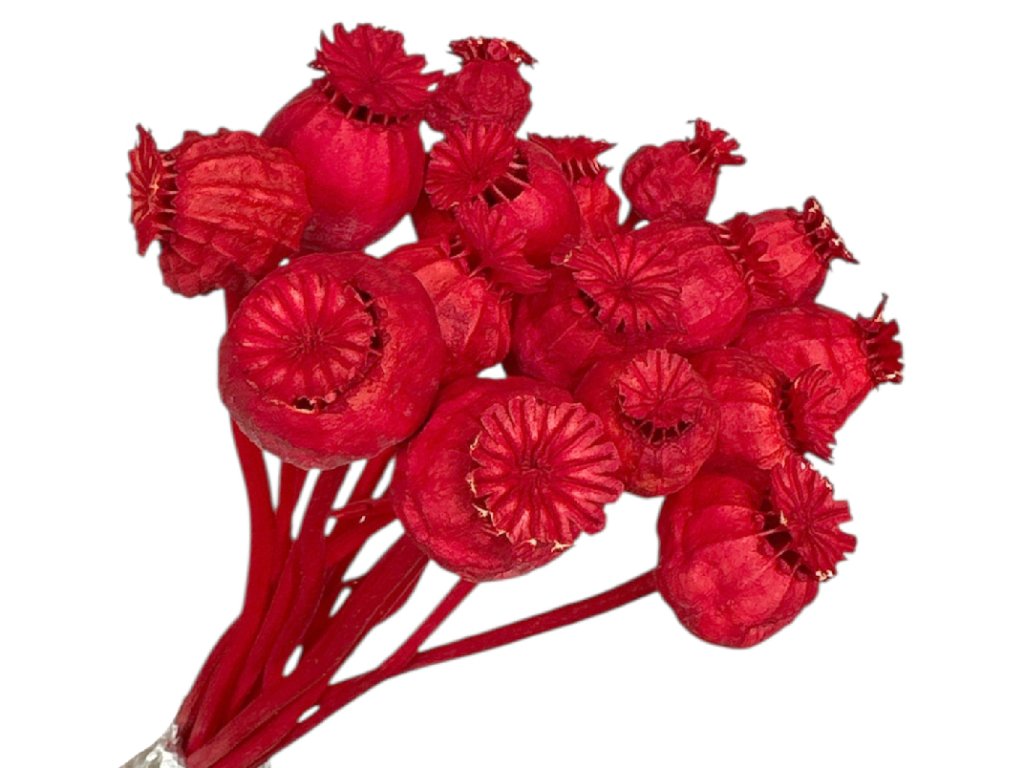 Red is the color of passion, strength, and determination. In decorations, it appears luxurious, energetic, and dominant. Deep red poppy heads represent an exceptional element that will enhance any arrangement – whether it's a festive table, gift wrapping, or an interior detail.