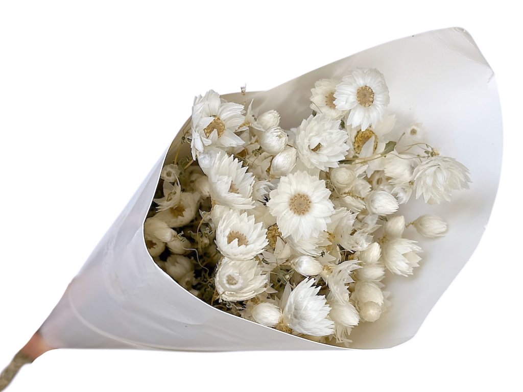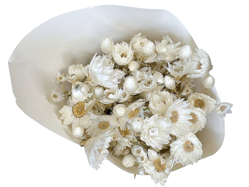 Dried decorative flowers mini strawflower Glixia Marcela - white Gentle and ethereal beauty that looks very delicate in every arrangement. Glixia Marcela in natural white...