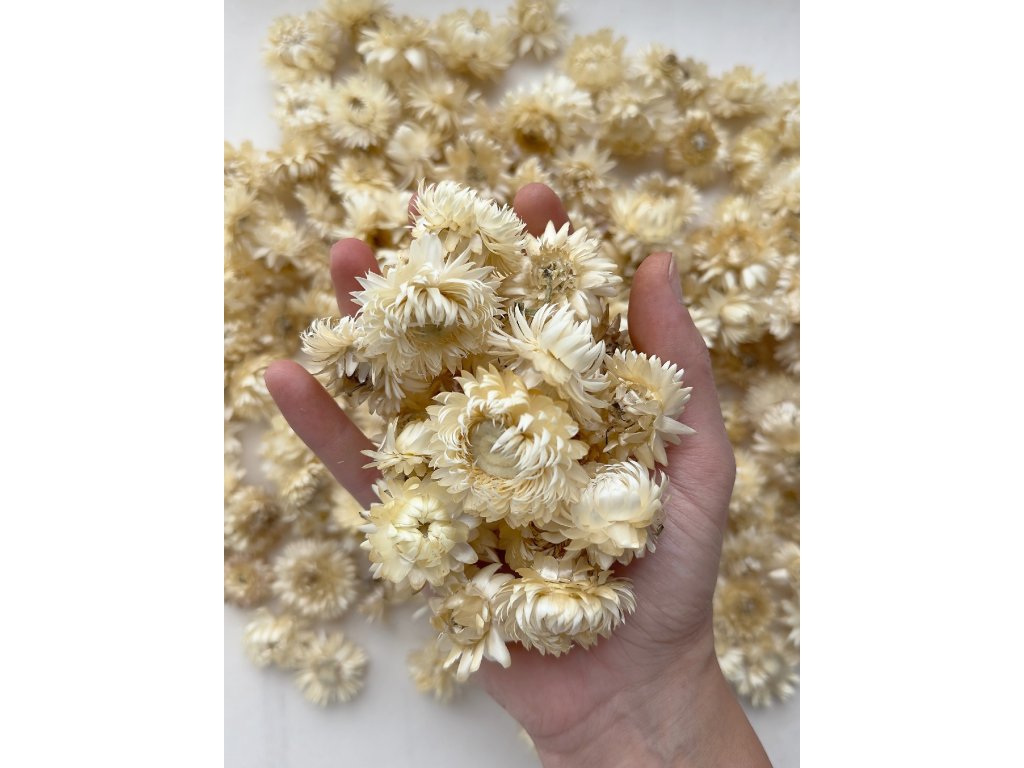 Helichrysum, also known as strawflower, originally comes from the Mediterranean and African regions. They are brought to the Slovak market from local farms where they are grown without chemical sprays. The heads are hand-picked and gently dried, preserving their intense color, delicate fragrance, and natural shape. The products are fully compostable and ecological, with a low carbon footprint.