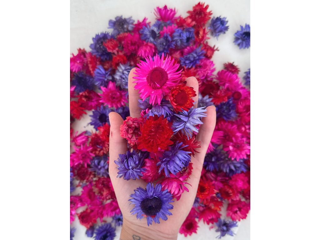 Dried Everlasting Flowers - Helichrysum - dark red Dried Helichrysum everlasting flowers in a rich red colour, in a 100g bunch, bring passion, energy, and a striking accent to...