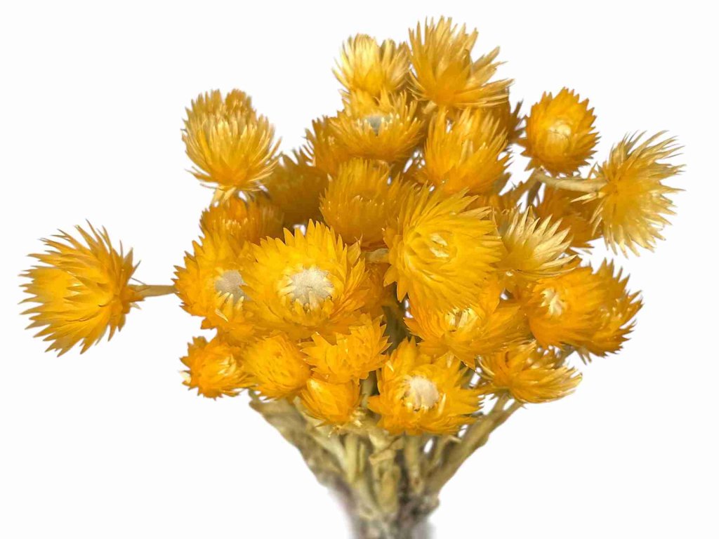 Dried decorative flowers mini strawflower Glixia larger - yellow Dried Glixia flowers in a vibrant yellow color – small but firm flowers with a natural sheen that will...