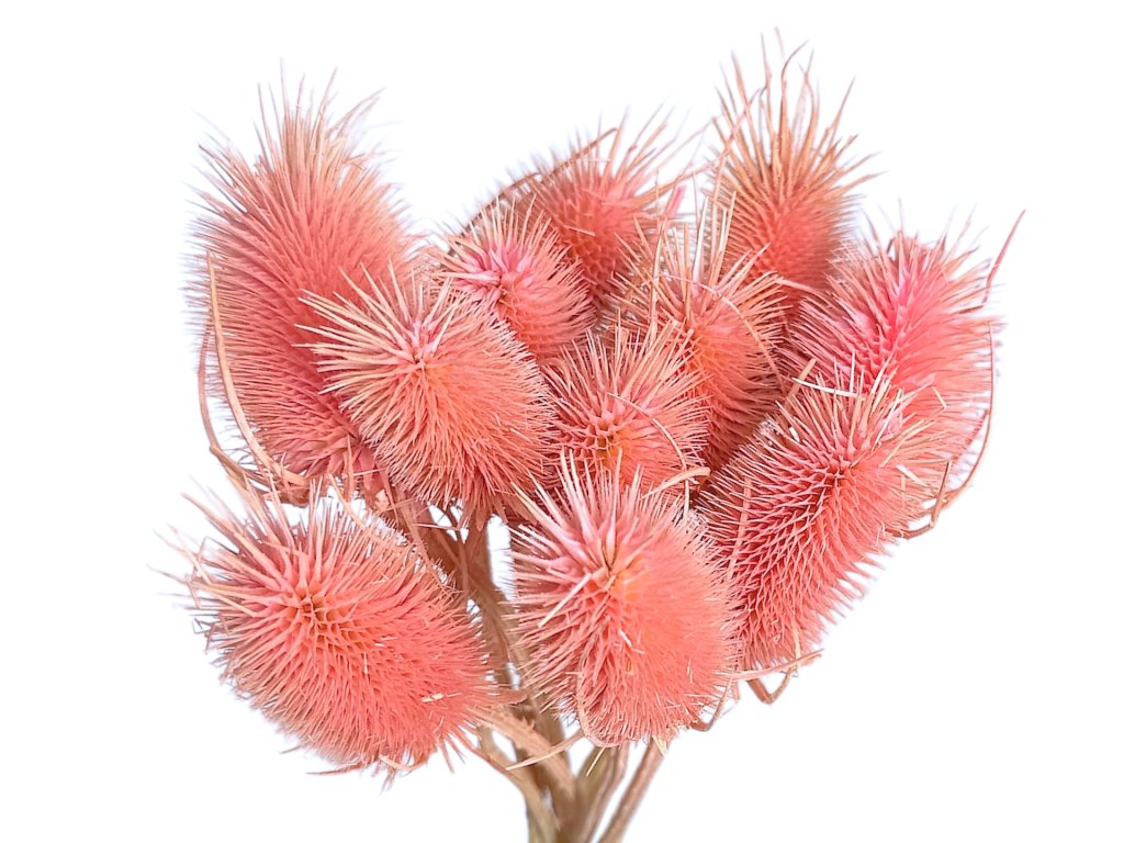 Dipsacus thistles - Wild Teasel with Stem - Pink Pink dried Dipsacus thistles (wild teasel) in a 50g pack - approx. 10 stems (10–20 heads) are a beautiful and original element...