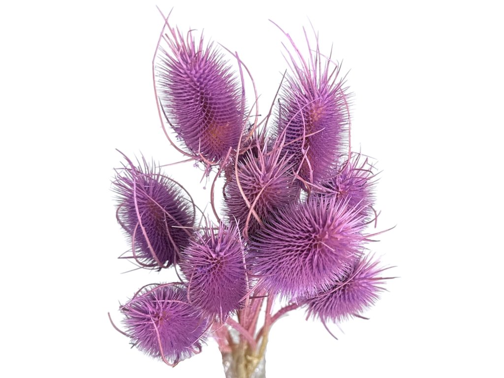 Wild teasel (Dipsacus fullonum) is a traditional meadow plant that grew abundantly throughout Europe. Our thistles come directly from local meadows and family farms, where they were hand-picked and subsequently stabilized and colored with an emphasis on quality. Thanks to gentle processing, they have retained their authentic shape and the color is truly vibrant.