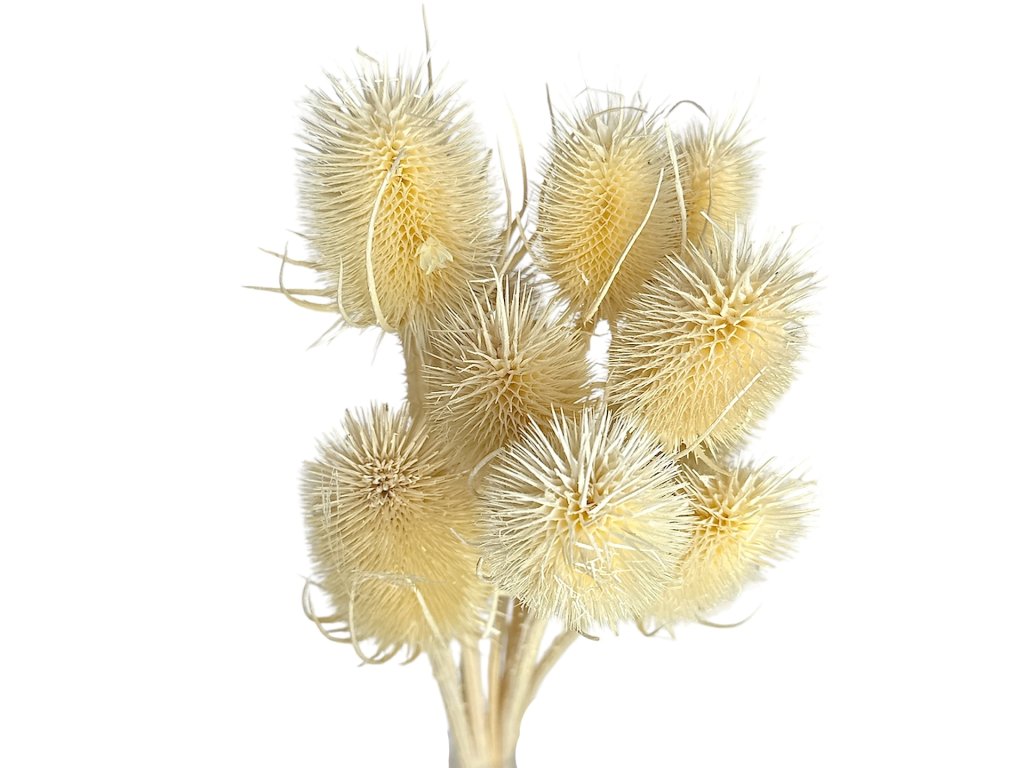 Wild teasel (Dipsacus fullonum) is a traditional meadow plant that grew abundantly throughout Europe. Our thistles come directly from local meadows and family farms, where they were hand-picked and subsequently stabilized and colored with an emphasis on quality. Thanks to gentle processing, they have retained their authentic shape and the color is truly vibrant.