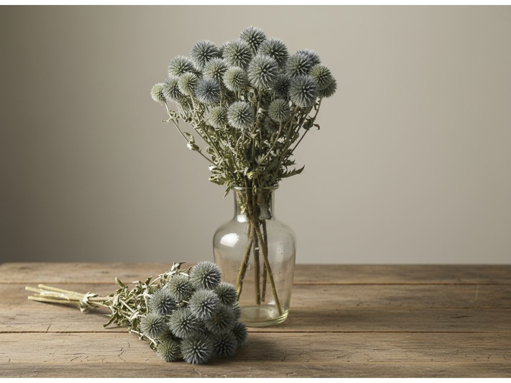 Echinops (Globe Thistle) symbolizes strength, independence, and protection. In the past, it was believed that thistles repelled evil forces, which is why they were hung in homes as a protective symbol. The grey-blue color is associated with balance, calm, and introspection – it perfectly complements both natural and modern interiors.