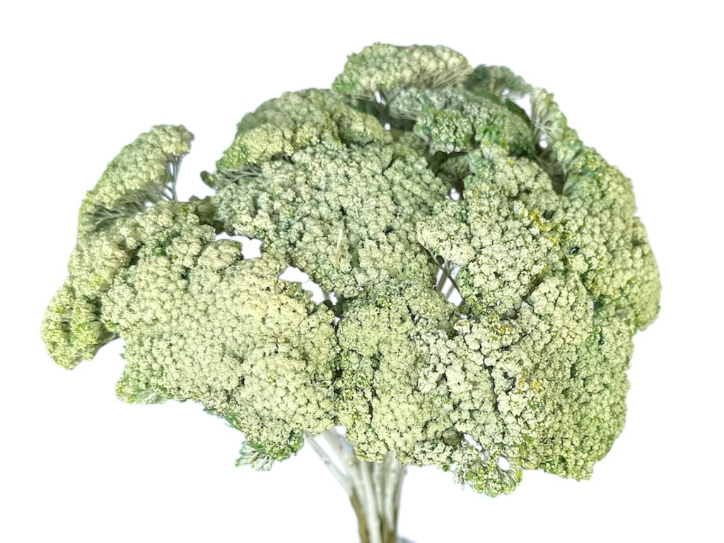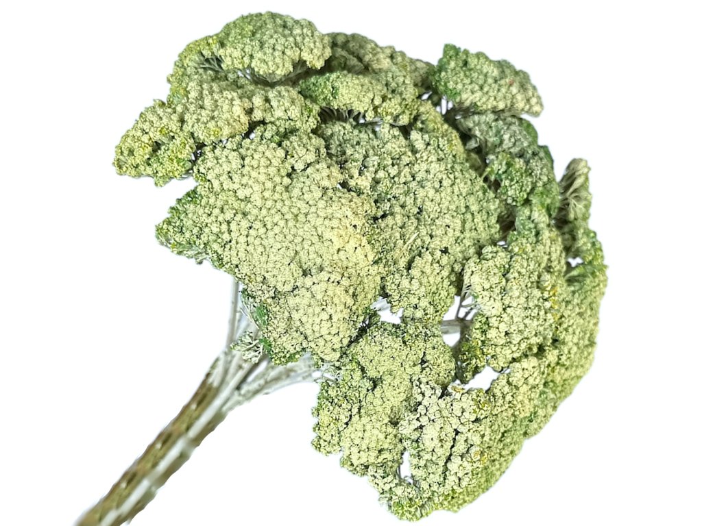 Yarrow (Achillea millefolium) is among the traditional field and meadow plants. Our stems are hand-picked during full bloom, gently dried naturally, and then lightly tinted to a vintage green color. Thanks to high-quality processing, they retain their structure and shape.