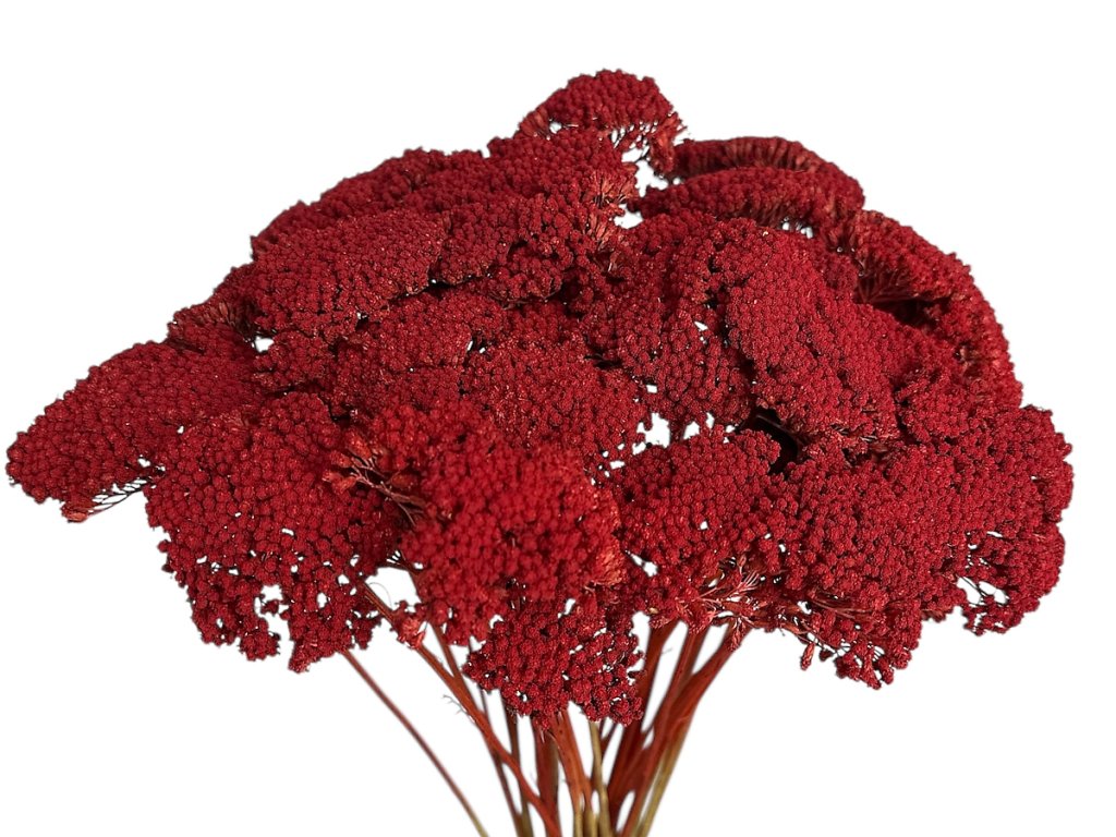 Yarrow is a plant known since ancient times – according to legend, it was used by the hero Achilles to heal wounds, hence its Latin name Achillea. In symbolism, it represents inner strength, courage, and harmony. The wine-red color symbolizes passion, energy, love, and the warmth of home – ideal for creating a cozy atmosphere during autumn and winter. It looks luxurious in interiors, adding depth and elegance to any arrangement.