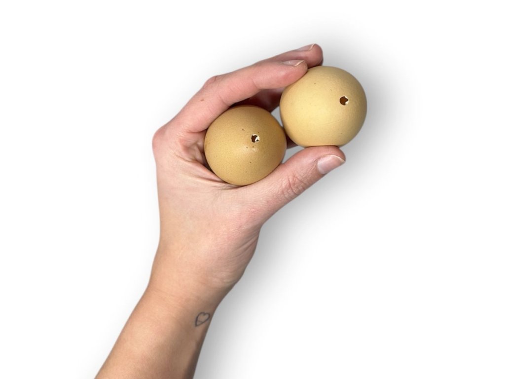 Chicken eggs are hand-blown and precisely processed to retain their most beautiful natural appearance. Each egg has only one small, neatly processed hole on one side. The shells are thoroughly cleaned, dried, and sorted by quality. It is a natural material without chemical dyeing or treatment.