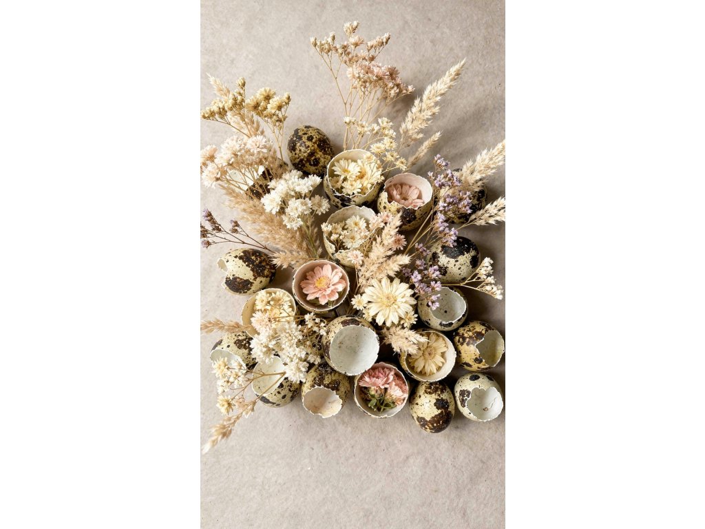 Quail shells are popular for their distinctive natural speckled pattern, which is inimitable. In floral arrangements, they symbolize spring, new life, delicacy, and detail.