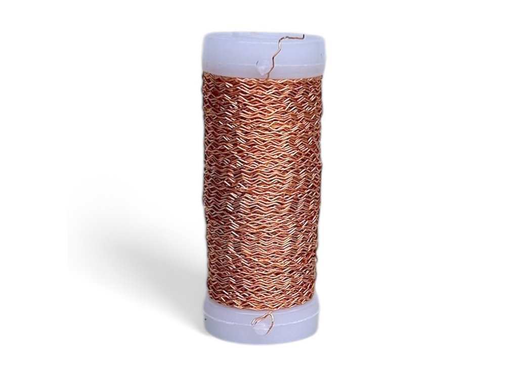 Crimped zigzag wire is especially popular for its ability to hold shape and adhere to materials without needing to be tightly fastened. In copper color, it appears warm and artisanal, adding an authentic and natural look to decorations.