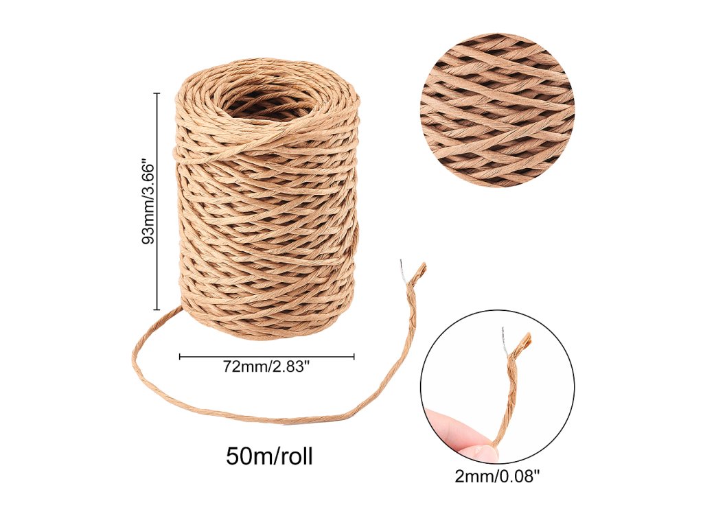 Light brown paper rattan wire with a diameter of 2 mm and a length of 50 m is a universal helper for florists and creatives. It is ideal for tying floral arrangements, securing stems, scrapbooking, gift wrapping, or other DIY projects. Thanks to the flexible and shapeable paper coating, the wire easily wraps around even complex shapes.